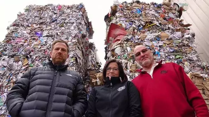 ▼该回收站的三位负责人在垃圾山前,一脸无奈▼