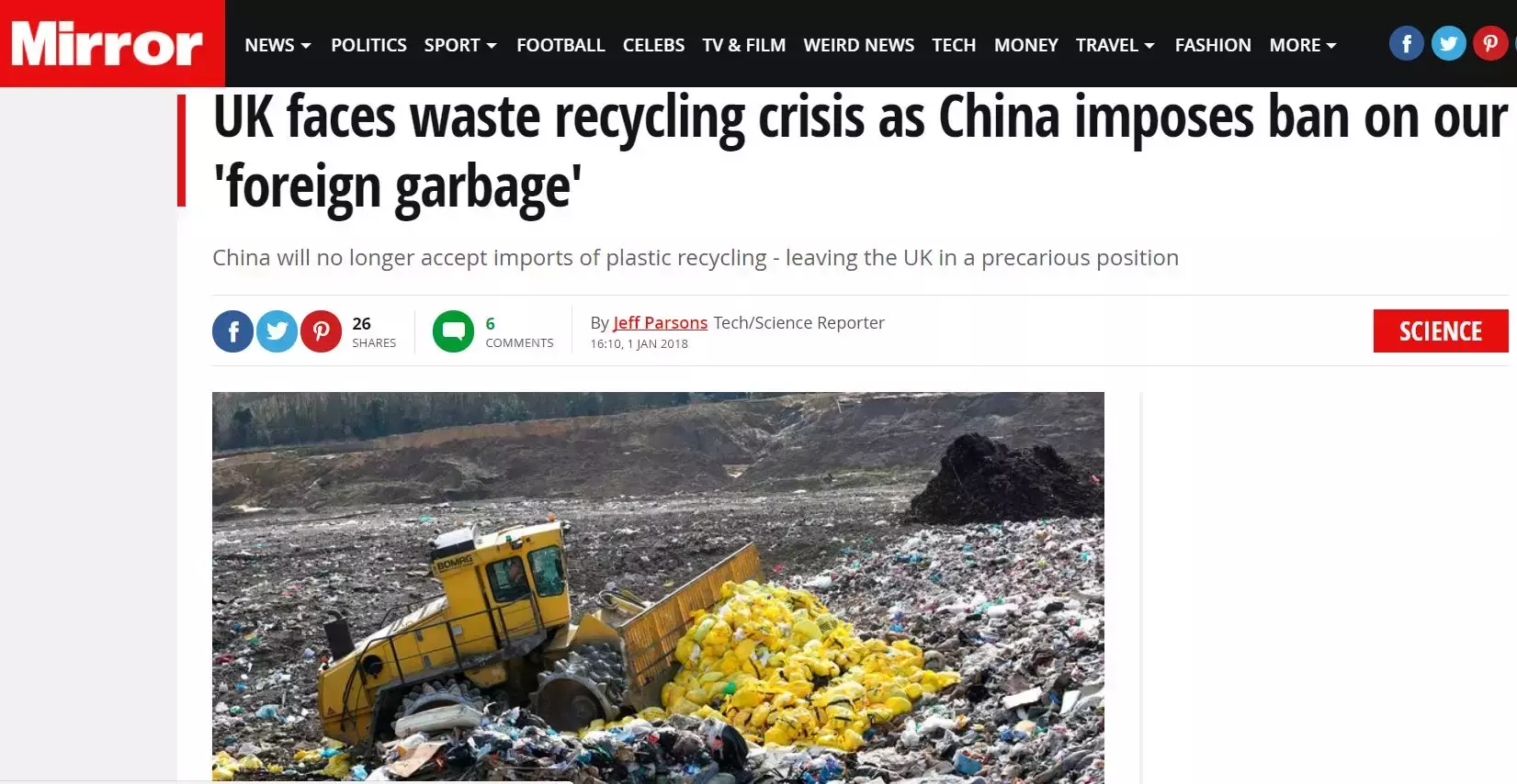 ▼中国禁止洋垃圾进口,英国面临垃圾处理危机